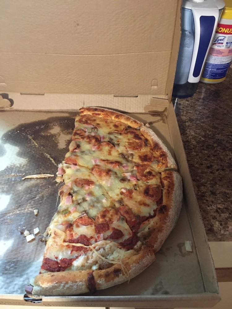 Pepperoni, hamburger, ham, mushroom, pepper, onion.